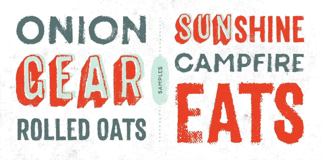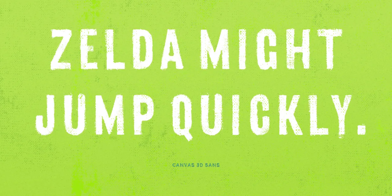 Canvas Sans is part of the Canvas Acrylic Megafamily. It includes Canvas 3D (a textured dimensional type set) and Canvas Basic (an all-caps geometric sans). It features authentic, hi-res texture that retains its realism even at very large sizes. Canvas Sans has double-letter ligatures that automatically fix adjacent duplicate letters. A bonus set of complimentary vector background textures, shapes and elements is available from the site.