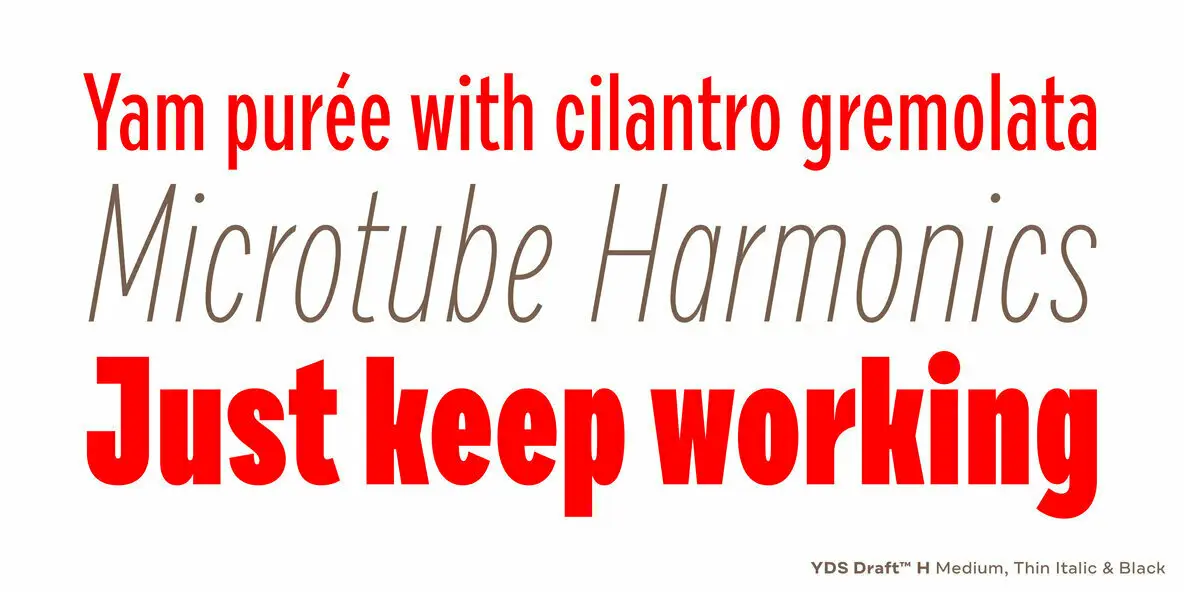 Draft from Yellow Design Studio is a 144-font powerhouse type suite that’s smooth and confident with a decidedly modern edge. It features nine weights (Hairline to Black) and eight widths (A to H) for ultimate flexibility and fine-grain control. With almost 600 glyphs, Draft offers a full complement of professional typographic features and extensive language support.