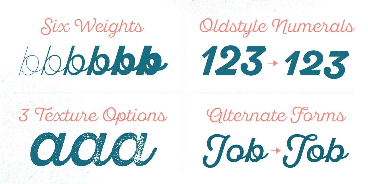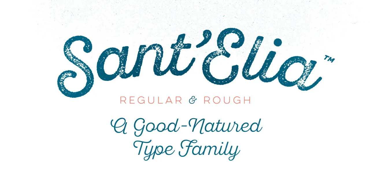 Sant’Elia Script from Yellow Design Studio is a robust modern type family with regular and rough versions in six weights. Its forms are crisp and welcoming with a splash of verve. Alternate versions feature angled strokes that inject extra energy. Rough weights include three different distress levels that can be mixed for added control and customization. Containing 44 styles, it is a versatile family with advanced typographic features. Try Sant’Elia Rough Line, Line Two, and Line Three!