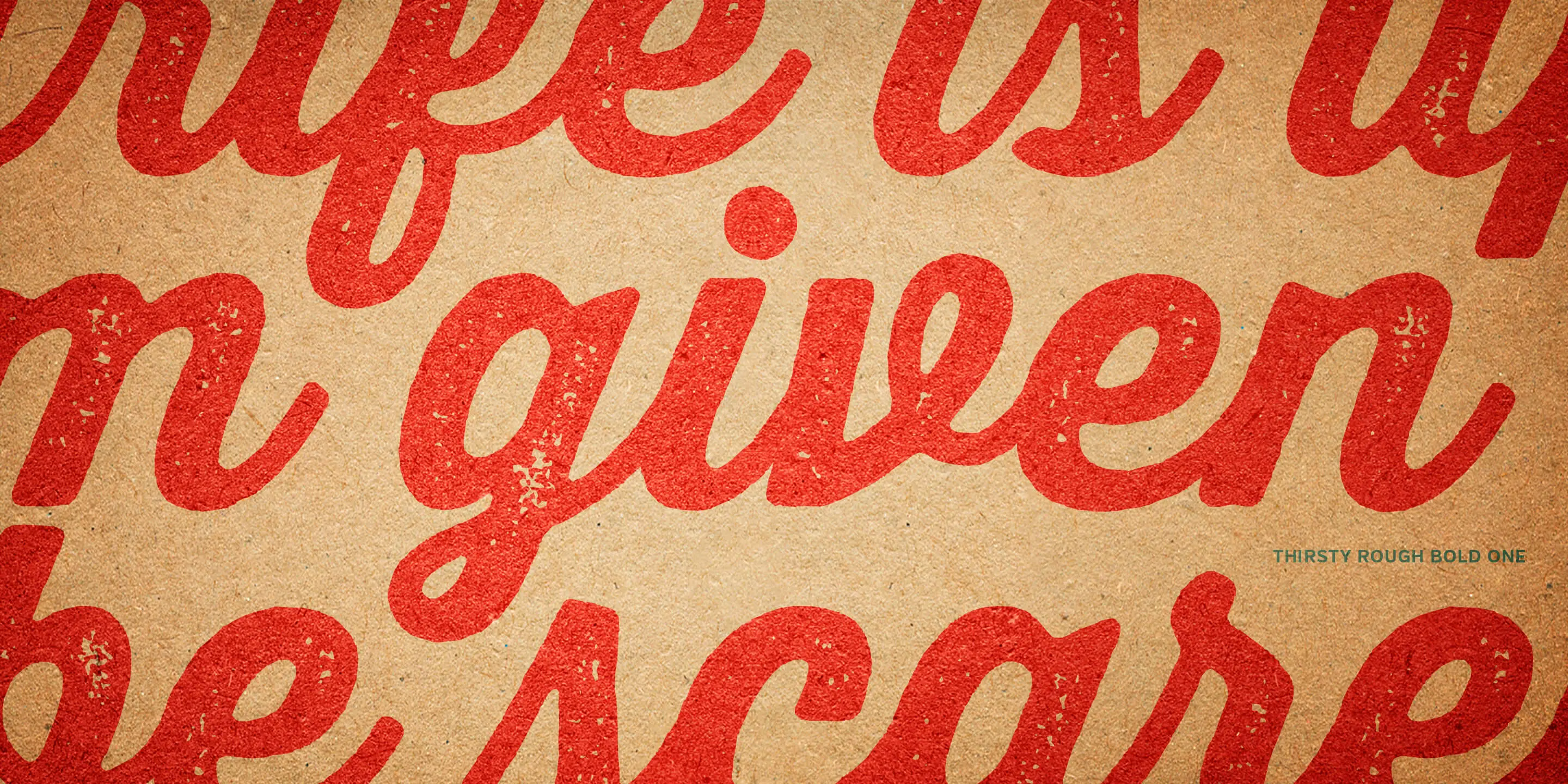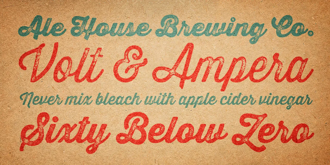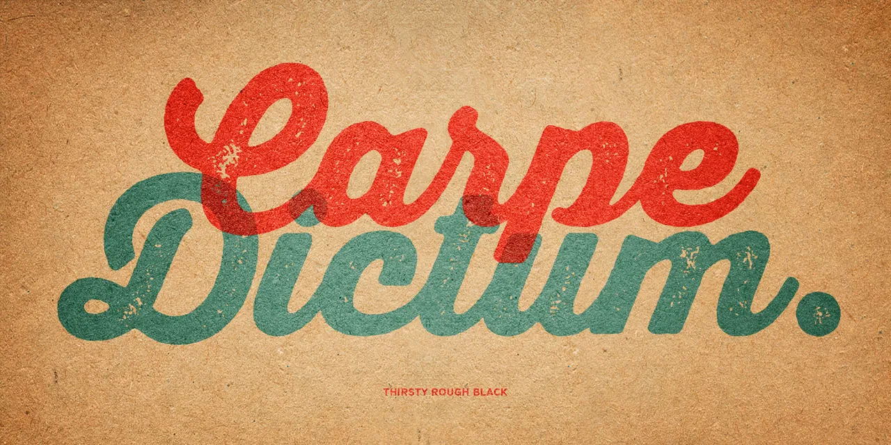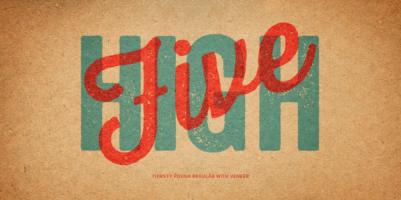 Thirsty Script Rough from Yellow Design Studio is the warm and weathered version of Thirsty Script with a texture that captures the authentic qualities of letterpress printing. It’s highly customizable with four alternate versions of every weight ranging from very light to heavy distress. Because it’s remarkably detailed, it looks great even at large sizes. It includes a set of matching texture pieces for extra customization and fun.