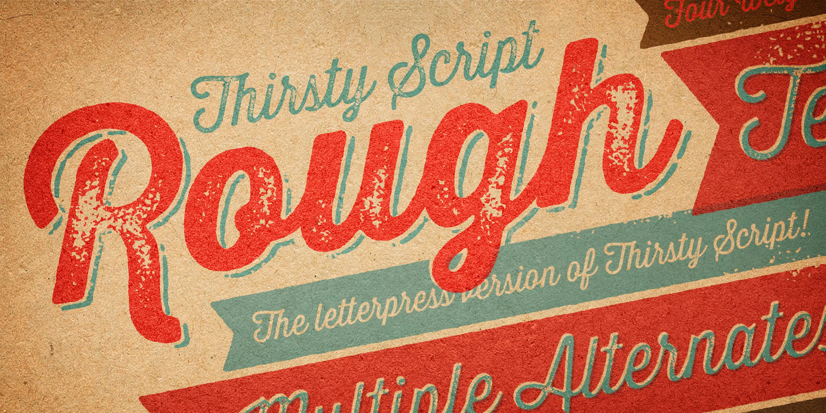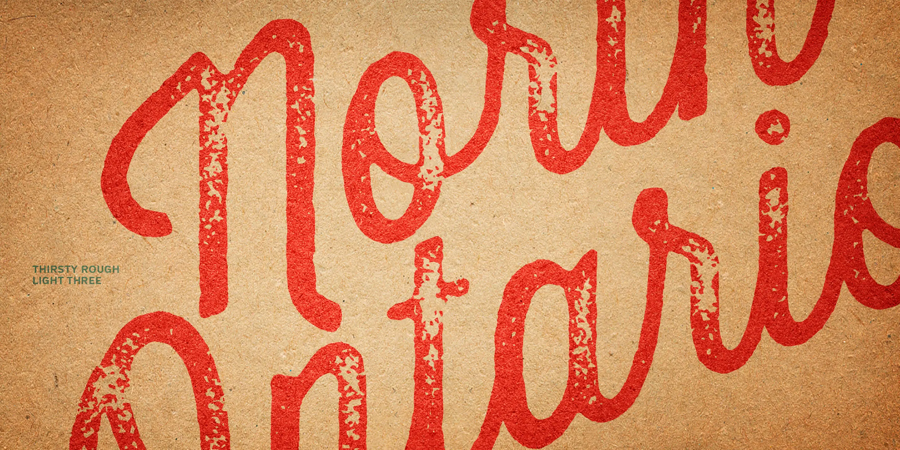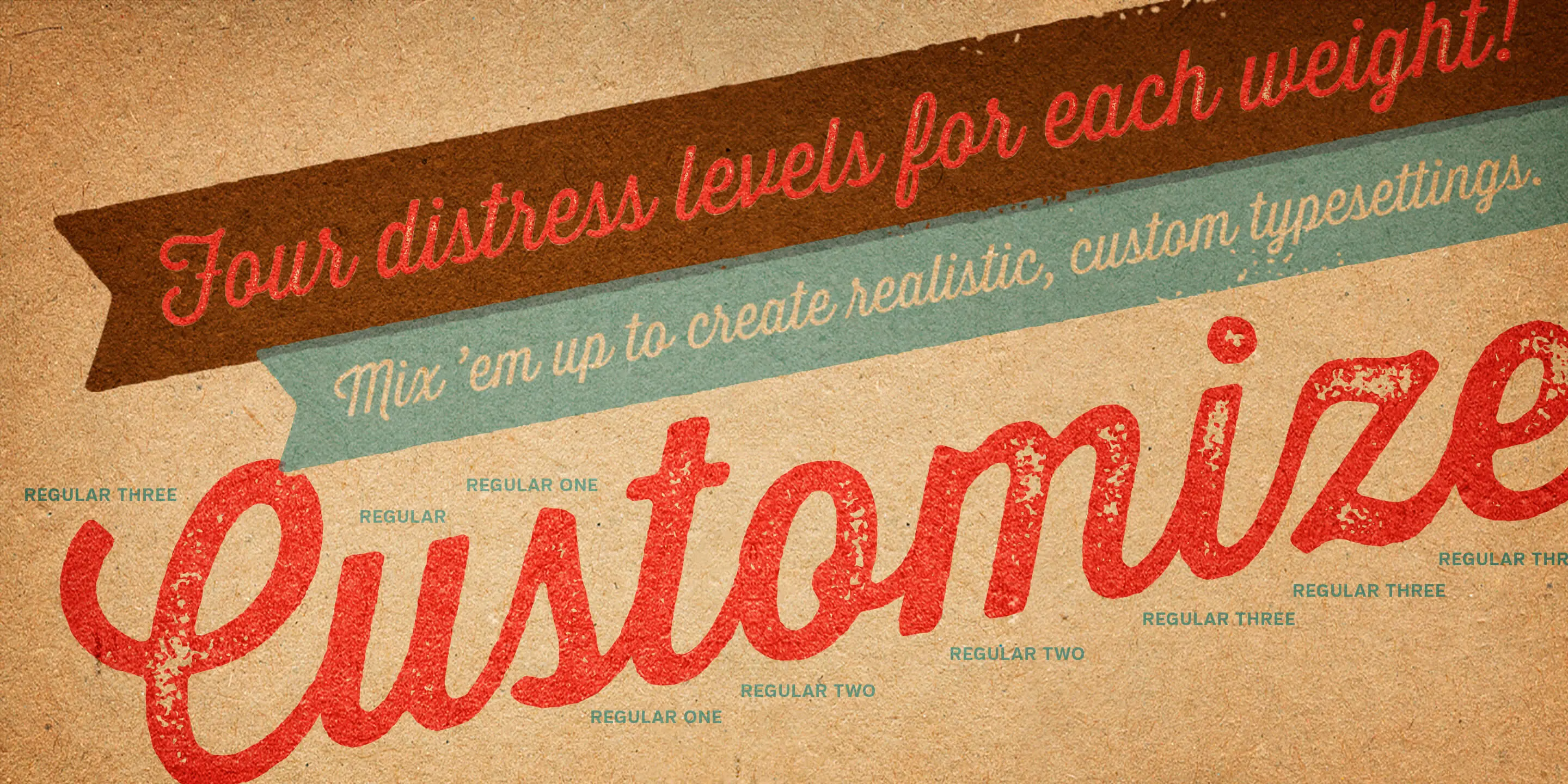 Thirsty Script Rough from Yellow Design Studio is the warm and weathered version of Thirsty Script with a texture that captures the authentic qualities of letterpress printing. It’s highly customizable with four alternate versions of every weight ranging from very light to heavy distress. Because it’s remarkably detailed, it looks great even at large sizes. It includes a set of matching texture pieces for extra customization and fun.